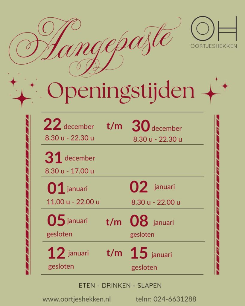 KOM GEZELLIG ETEN EN DRINKEN BIJ OORTJESHEKKEN